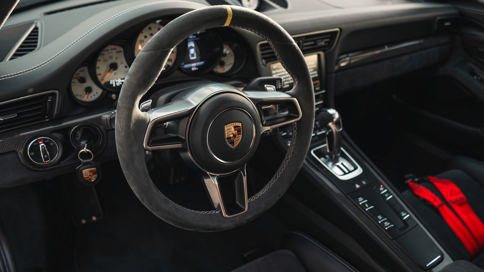 Das Fahrzeug besticht durch eine lückenlose Historie: Bestellt in der Porsche Niederlassung Hamburg, liegt das originale Bestelldokument vor. Mit nur 22.000 km Laufleistung und aus zweiter Hand präsentiert sich der RS in einem tadellosen Zustand. Um den Werterhalt zu maximieren, wurde die gesamte Frontpartie professionell mit einer hochwertigen Lackschutzfolie foliert.